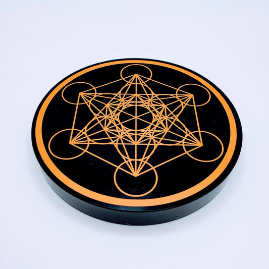 Obsidian metatron cube charging plate | Flourite octahedron | Selenite skyscraper