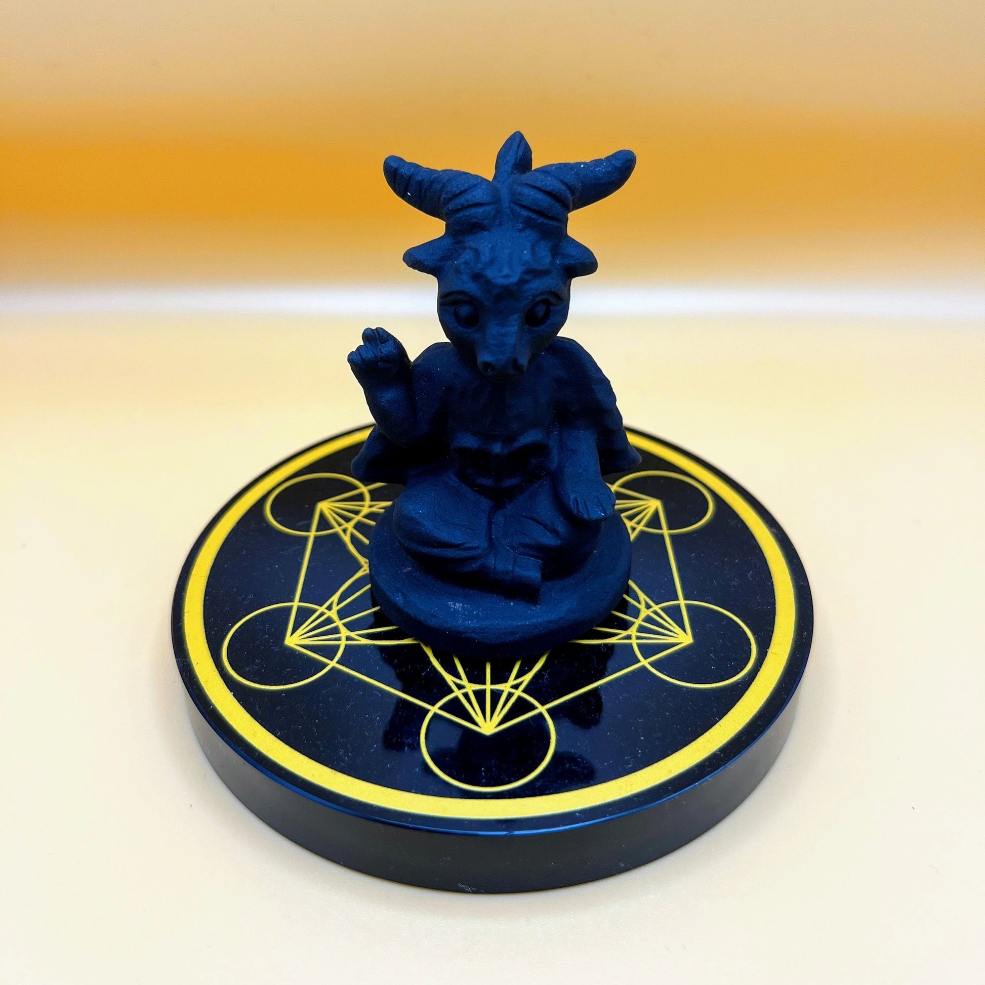 "Baby Baphomet (3")" | Obsidian Sculpture, Metatroncube, Fluorite Octahedron | Yin Yang balance, duality, spiritual enlightenment