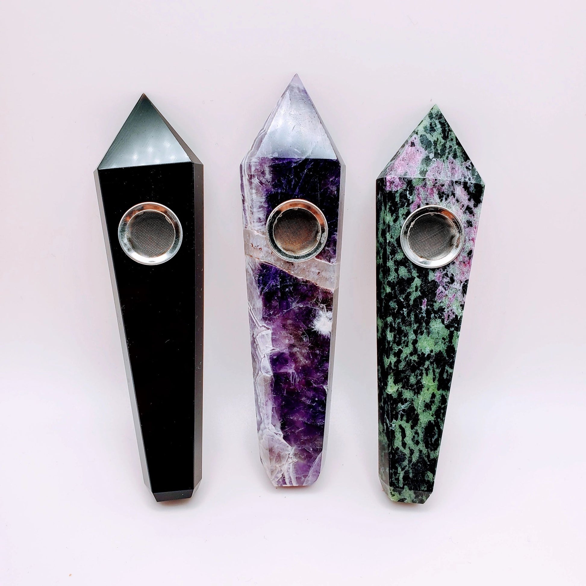 Black Obsidian, Ruby Ziosite, Amethyst | Crystal Smoke Pipe