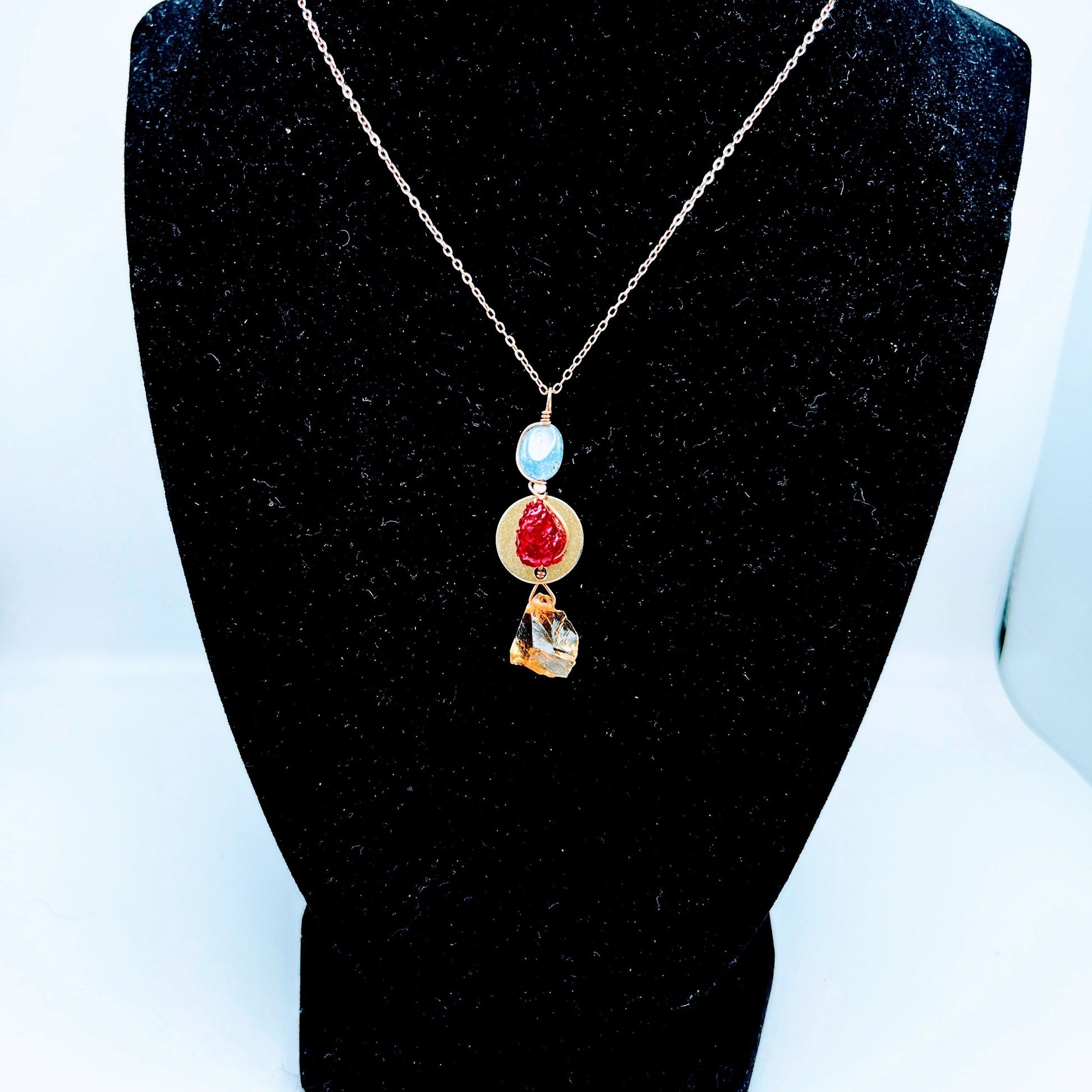 "Deep Love" | Blue Sapphire, Ruby, Citrine necklace and earrings | Loyalty, Happiness, Will power, Love