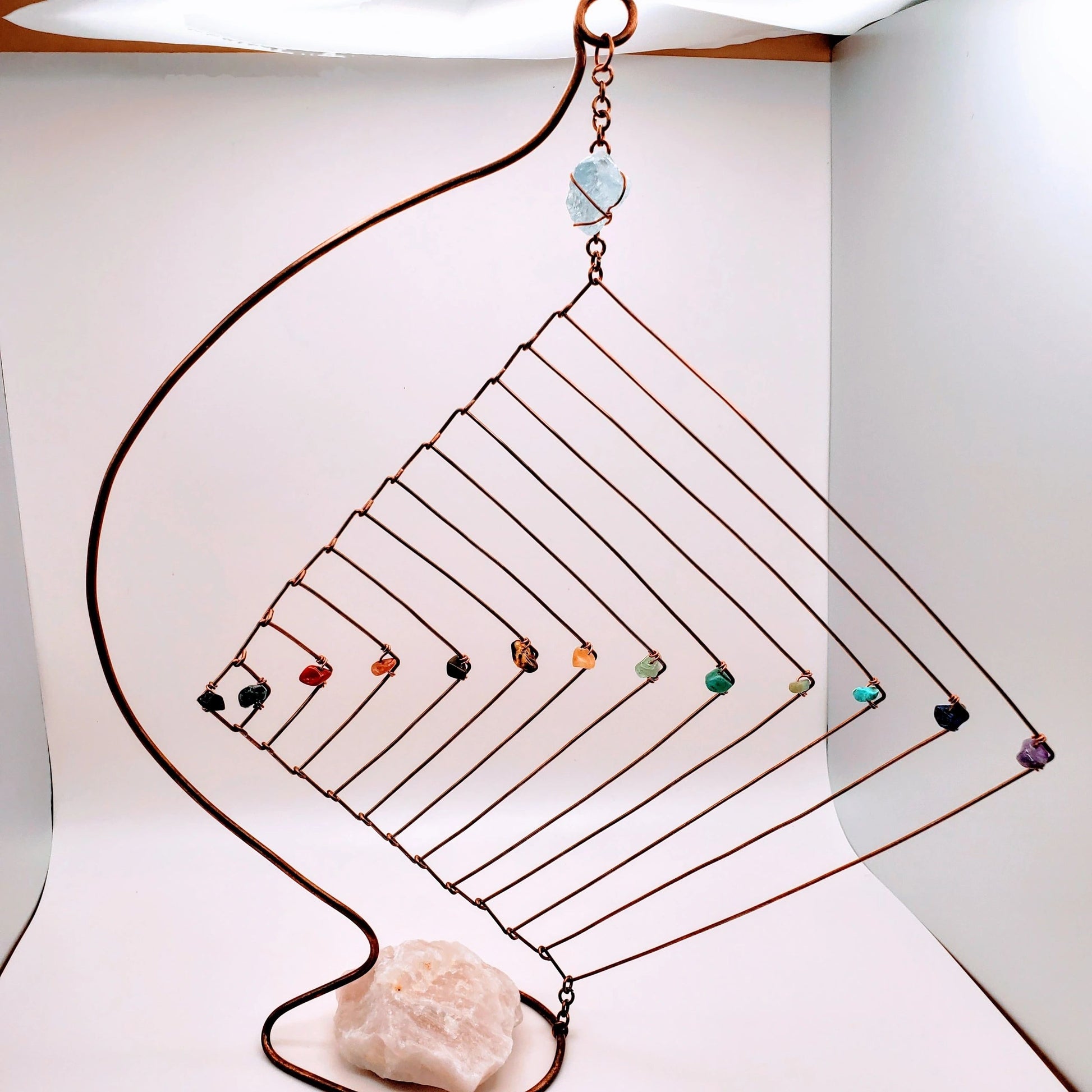 "Divine Love" | Multi-crystal copper toy with large rose quartz as base weight and celestite on top