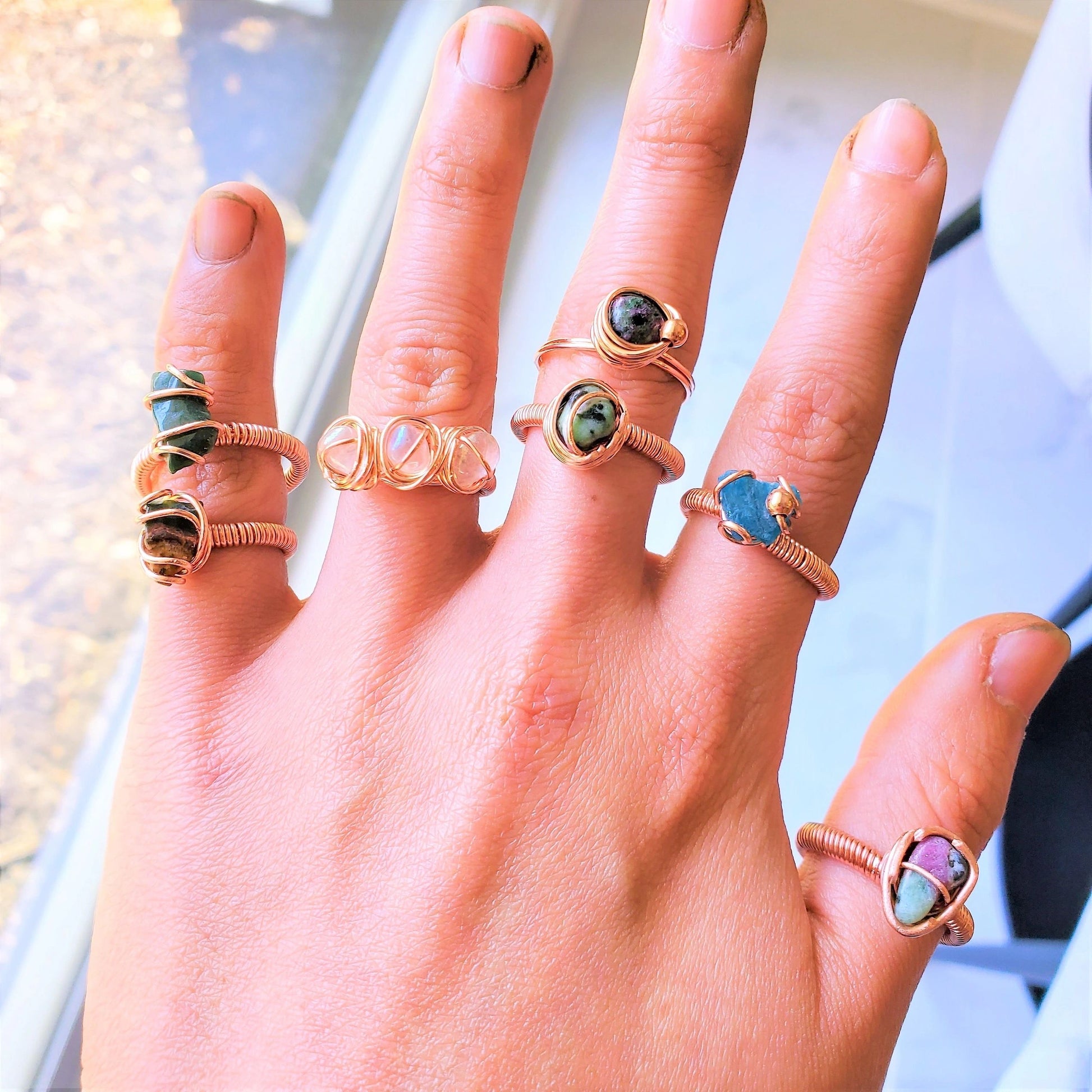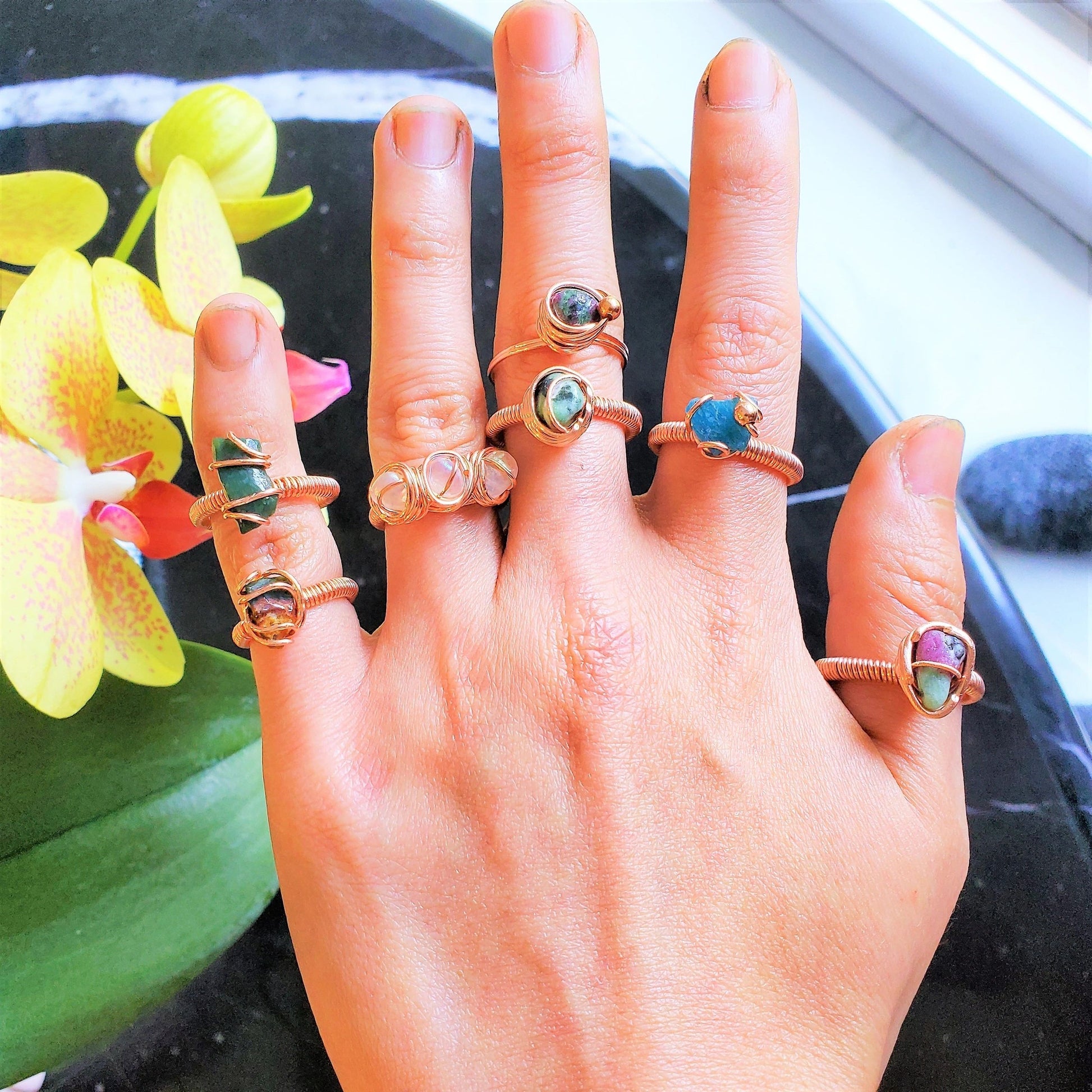 [FINAL SALE] Copper & Crystal rings | Bloodstone, Garnet, Apatite, Angel Aura, Ruby Ziosite