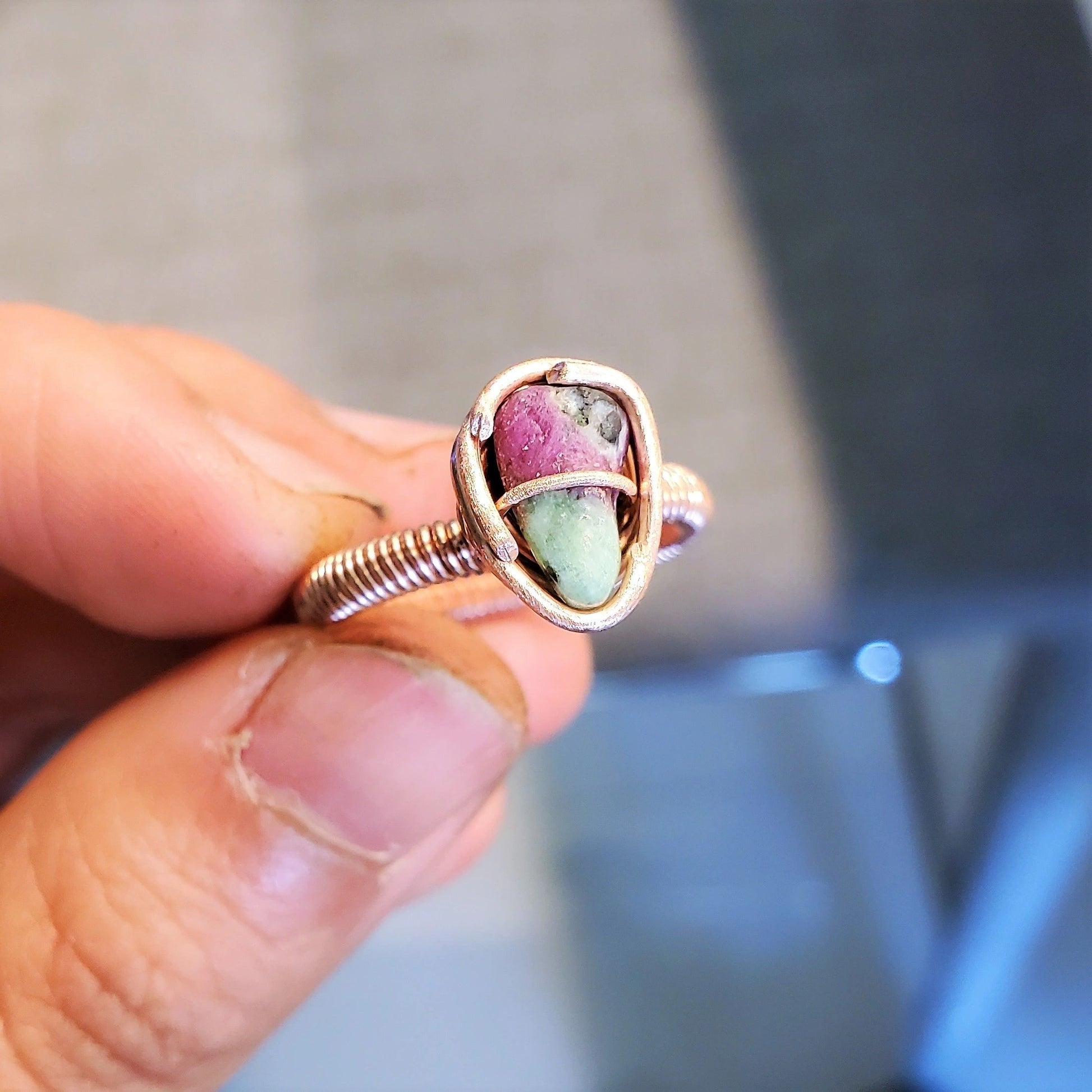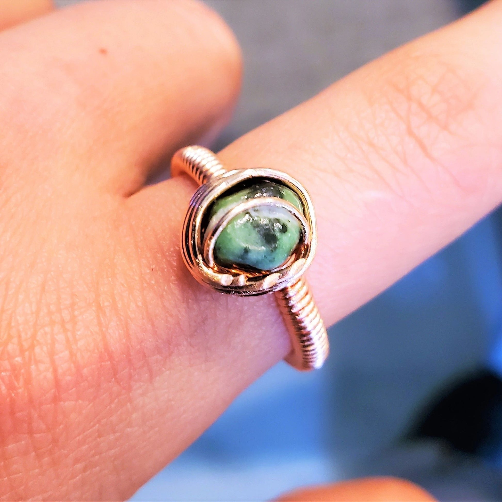 The third batch of #rootscrystal rings! 💍 Included: #garnet ❤️ for #abundance, #gratitude #bloodstone 💚 for #grounding, #purification #apatite 💙 for #knowledge, #truth angel aura 🤍 for #hope, #joy ruby ziosite 💜 for #courage, #strength #rootscrystal #crystalrings #crystaljewelry #crystalhealing #crystalenergy #angelaura #rubyziosite #customjewelry #handmadejewelry #healingcrystals #smallbusiness #shopsmall #handmade #instafashion