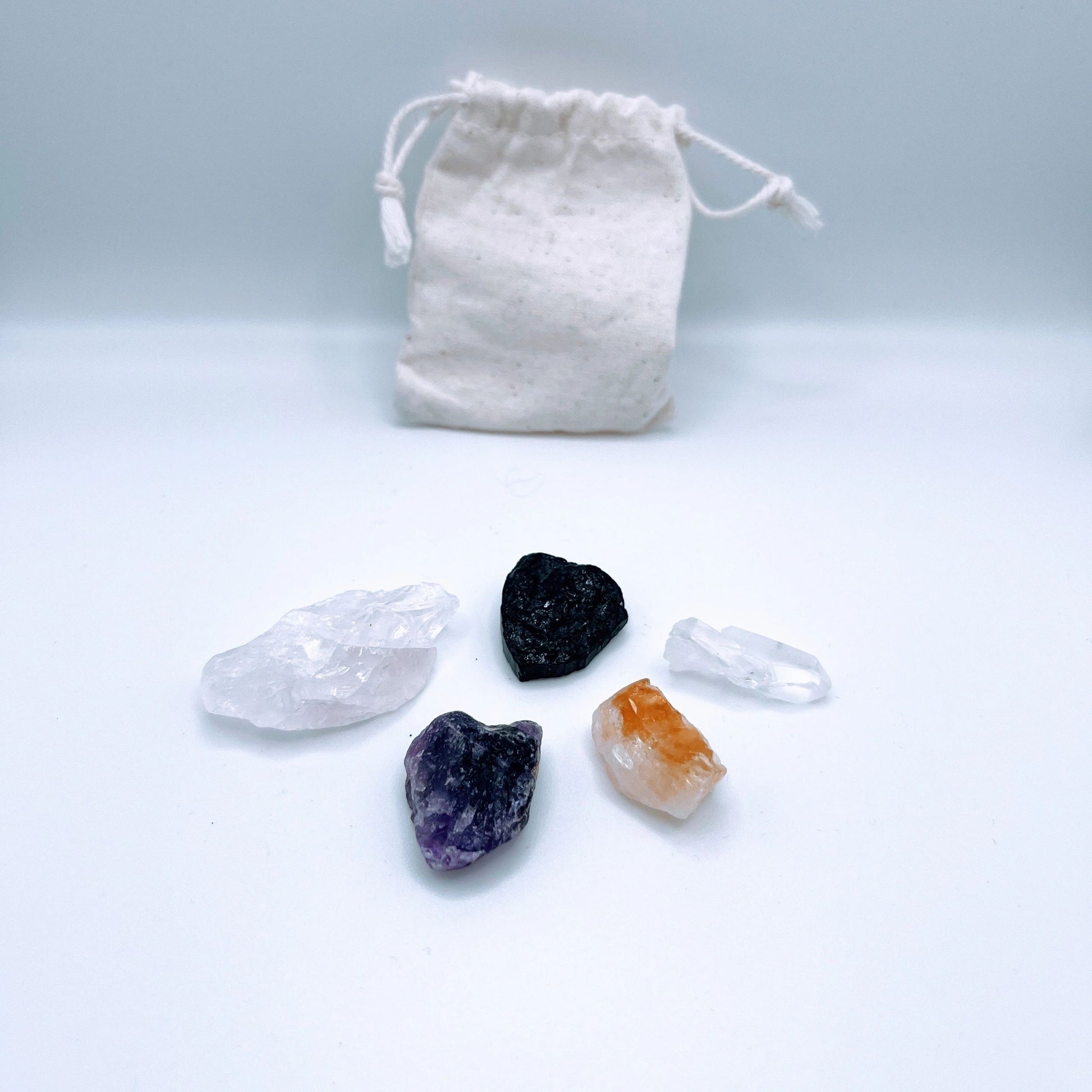 "Protection" Pack of Raw Crystals: Tourmaline, Amethyst, Citrine, Rose Quartz, Clear Quartz | Easily carry in your pocket