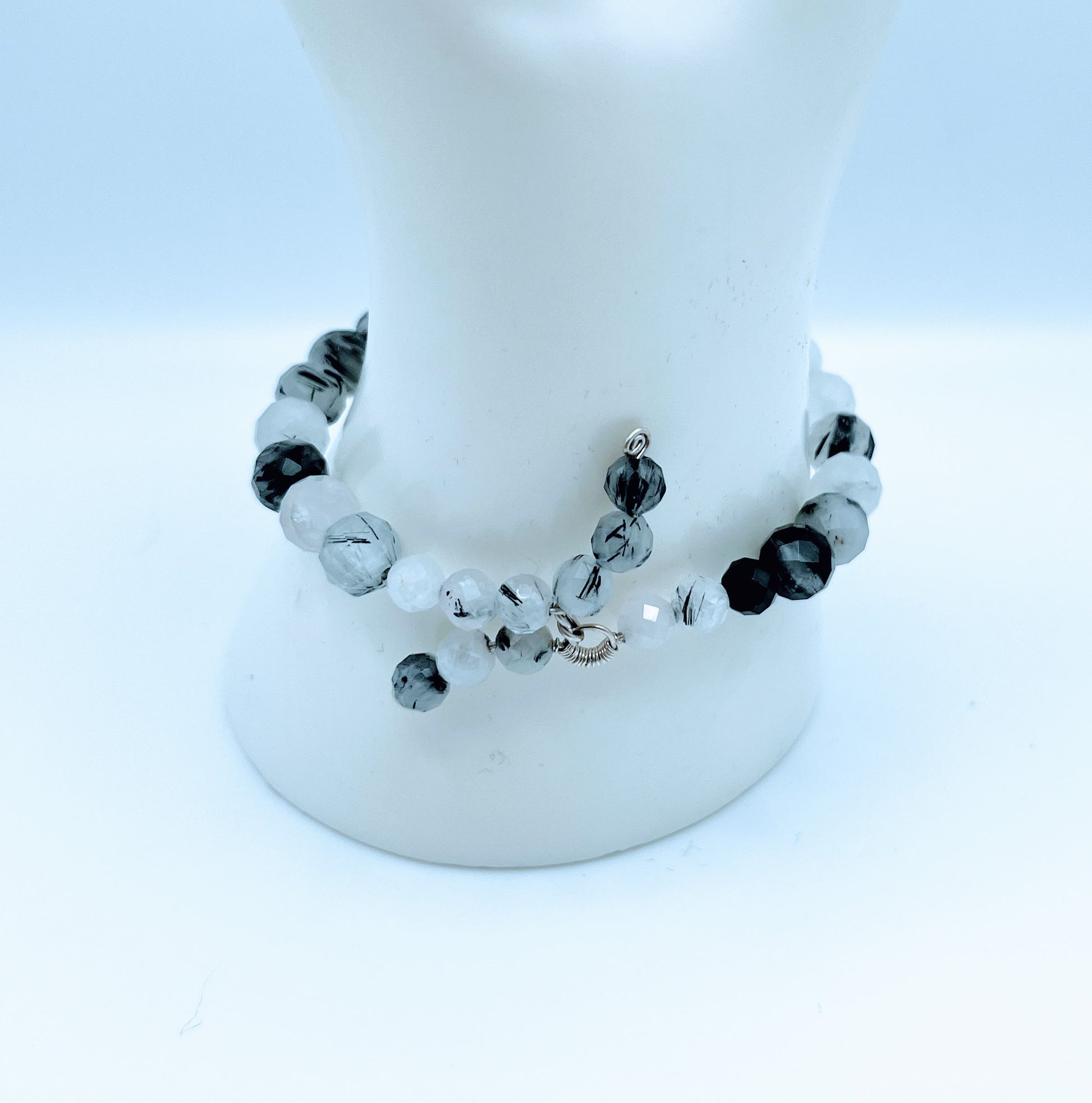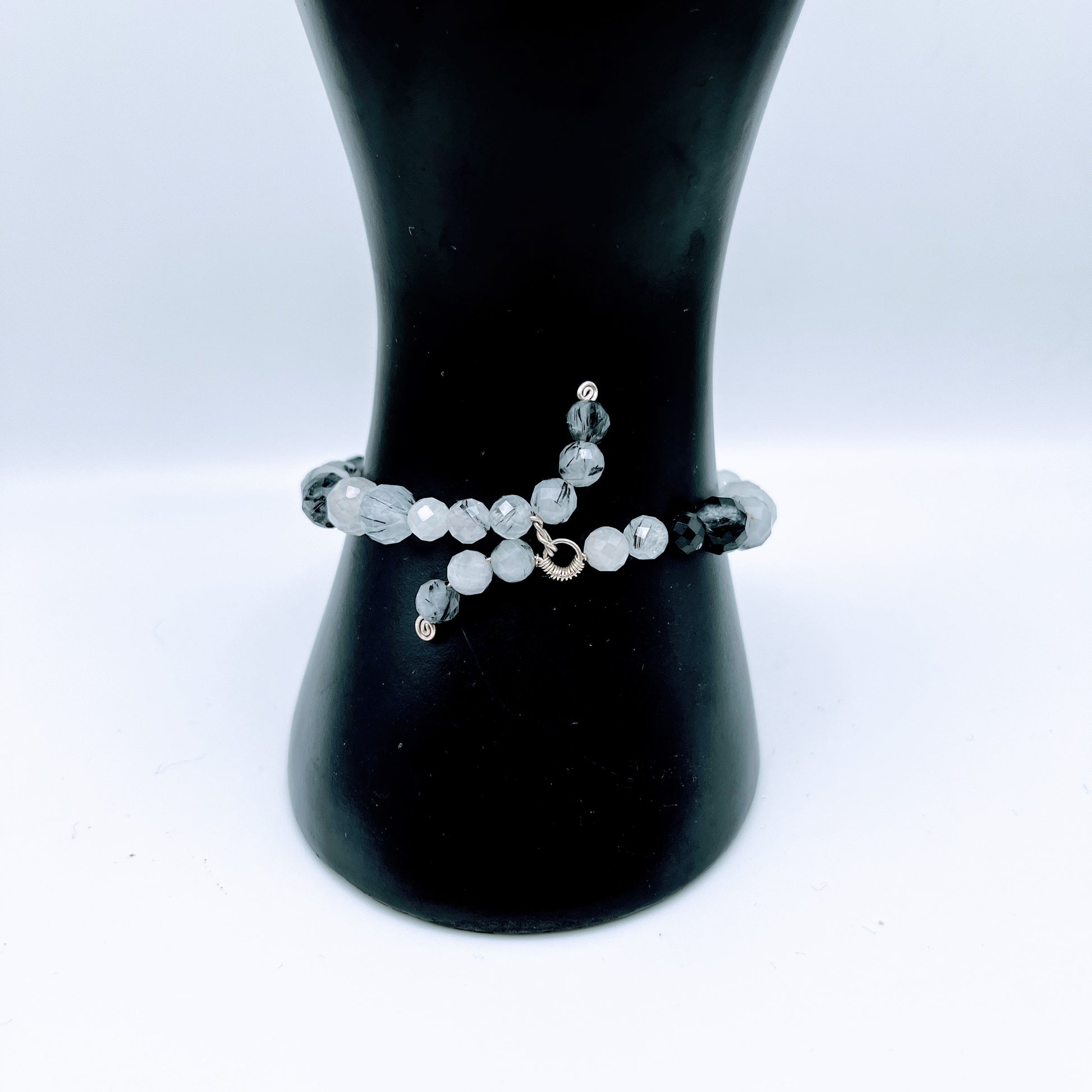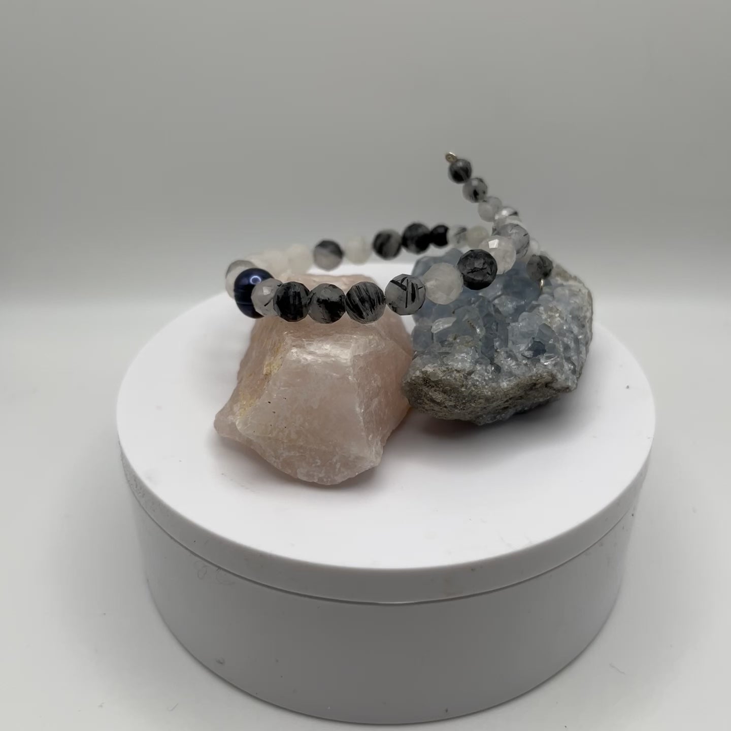 Embrace your inner purity with the "Purity" bracelet, crafted with tourmalinated quartz and black pearls. 🌟 Find protection and balance in these stones, exuding positive energy. 🙌🏼 Stay grounded and shine bright with this unique piece. 💎 Sterling silver wire with simple clasp in the back. Fits small-medium wrists.