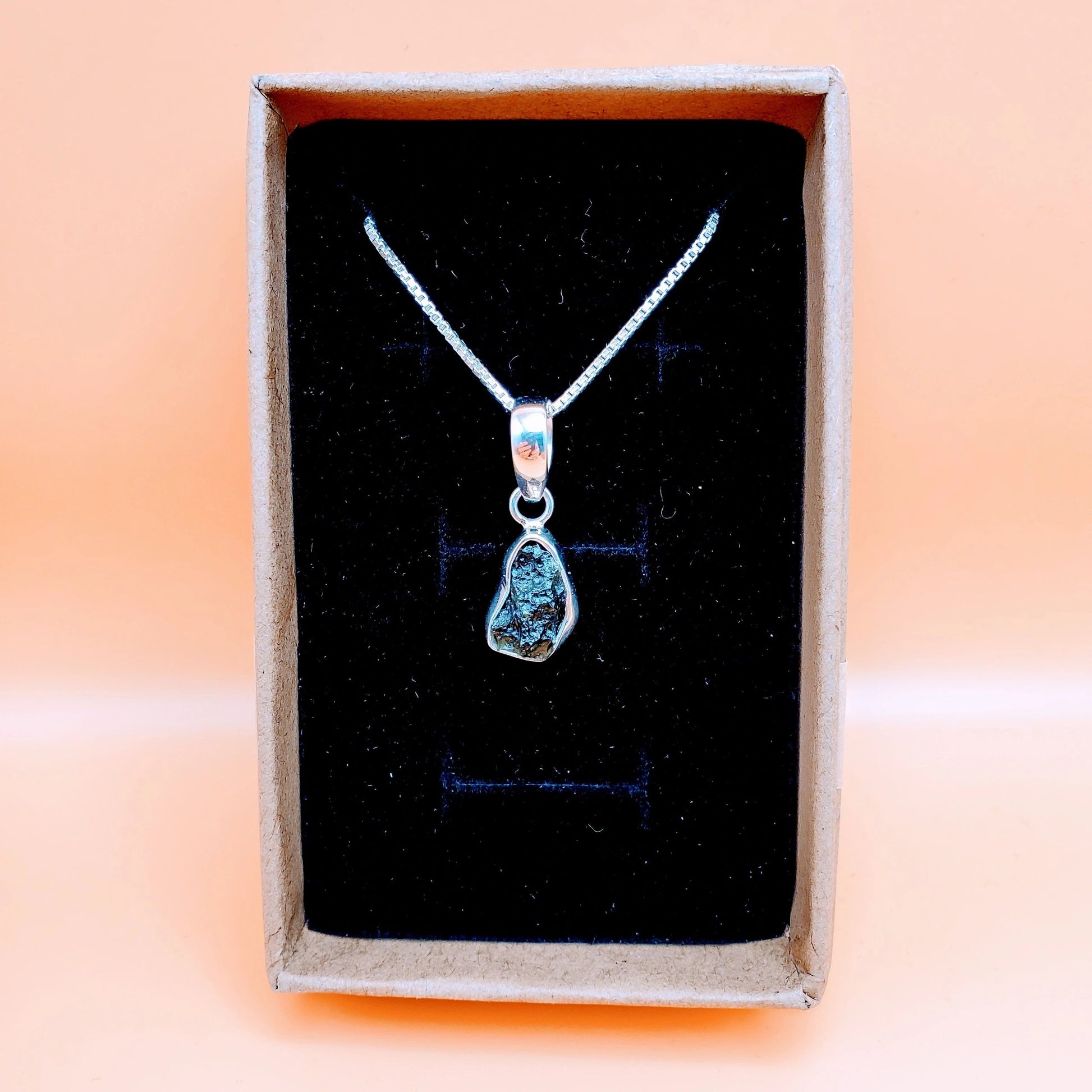 Be transported to another world with this "Transported" Moldavite Necklace! Originating from a meteorite that collided with Earth almost 15 million years ago, this sparkling crystal is said to bring good fortune, transformation, and protection. Let the ancient magic of Moldavite work its wonders on you 🧚♀️🌌♻️.