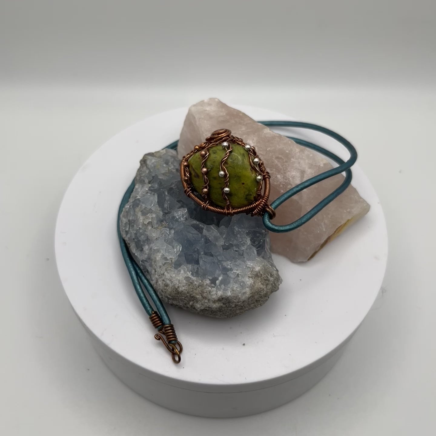 "Unlock your inner wisdom with the "Wisdom tree" necklace! Made with beautiful Atlantisite stone 💎, this necklace promotes tranquility (😌), opens the mind (🔓), and encourages spiritual growth (🌱). Take a step closer to enlightenment with this unique and playful accessory.
